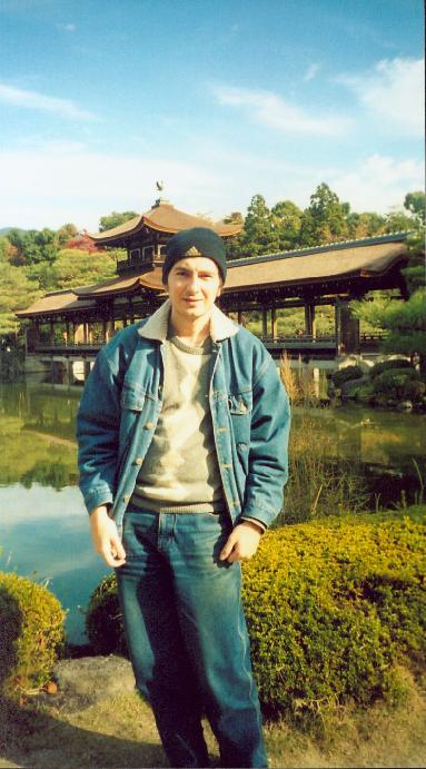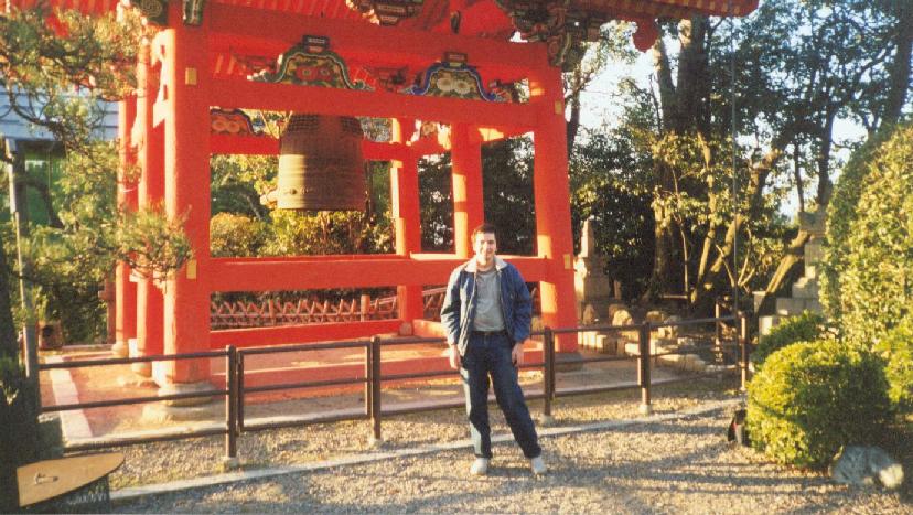 A certain tourist at the bell of the Kiyomizutera Temple.